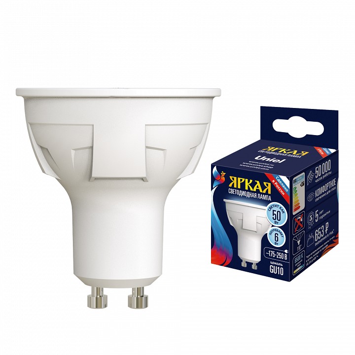 | Альтернативное название | Лампа светодиодная Uniel яркая GU10 6Вт 6500K UL-00011020 |